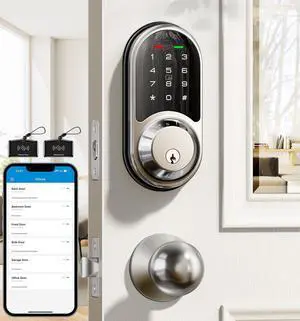 RZ06C Smart Locks for Front Door, 2 Knob Handle Set, Keyless Entry Deadbolt, App Control, Electronic Touchscreen Digital Keypad, Auto Lock, Easy Installation, IP54 Waterproof, Satin Nickel