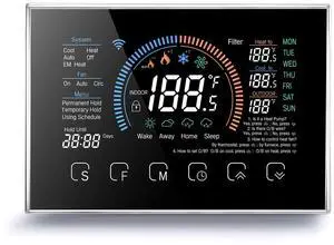 Smart Thermostats, Heat Pump Room Thermostat, 4.8 Inch Temperature Controller Color LCD Screen Programmable Thermostat for House, Fit for Alexa for Google for Home Office Hotel (Black)