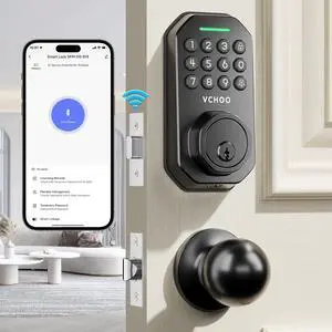 Keyless Entry Keypad Deadbolt with Handle Set, Smart Lock, Auto-Lock + One-Touch Lock, 100 Codes + 15-Min Easy Install, Ideal for Airbnb/Homes/Offices, Fits U.S. Standard Front Doors, Black