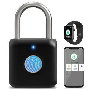 Fingerprint Padlock, Smart Padlock, Locker Lock, Fingerprint Lock with APP Unlock, USB Rechargeable, Suitable for Gym Locker, Door(Black)