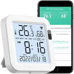 WiFi Temperature Humidity Monitor: Upgraded Smart Temperature and Humidity Sensor with Large Backlit LCD Screen & App Alerts, Indoor Thermometer Hygrometer Compatible with Alexa Google Assistant