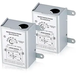 Hiorucet 58034 Attic Fan Thermostat Control with Fire Shut Off Fuse, Replacement Thermostat with Adjustable Temperature Finger Dial Switch, Temperature Control Switch for Attic Fan, 2 Piece