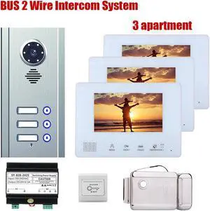 7inch TFT LCD Indoor Screen Monitor 2pin Wired Video Door Phone Visual Intercom systems Doorbell Kit for Family Villa Outdoor home 1 Units Apartment Door Bell + Elec Lock,1 doorbell + 3 monitor
