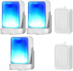 Loud Flash Doorbell with 7 Colors of Bright Light and 4 Volumes, Wireless Doorbells 600 feet,at Home/Office,Suitable for the Elderly, Hearing Impaired People, 2 Transmitters with 3 Receivers