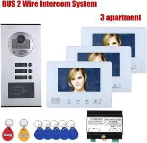 Wired WIFI 7 Inch Doorbell Monitor BUS 2 Wire Video Door Phone Intercom systems Kit for home 3 Units Apartment Night Vision Support Remote APP 3 Monitors +1 Camera