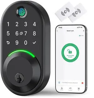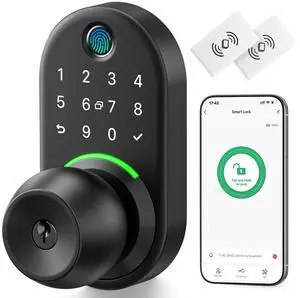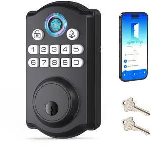 Bluetooth Fingerprint Smart Lock with Handle & Keypad  Fits Most US Doors, DIY Install, Keyless Entry: Code, FOB, Auto-Lock. Ideal for Home, Airbnb & Rental, Kids & Seniors. Alexa & Google Compatible