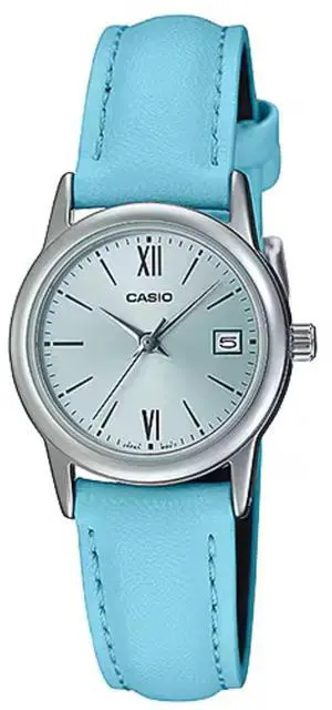Casio Womens Light Blue Leather Watch with Silver Dial - LTP-V002L-2B3UDF