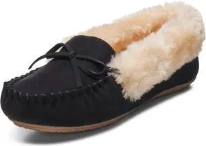 AlpineSwiss Leah Womens Shearling Moccasin Slippers Faux Fur Slip On House Shoes