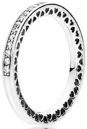Pandora Silver Enamel & Clear CZ Radiant Hearts Ring