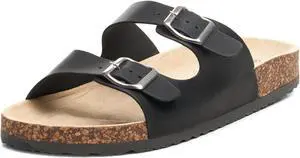 Alpine Swiss Womens Double Strap Contour Sandals Slip on Buckle Slides Vegan Leather Footbed Sandal Ergonomic Cork-Inspired Sole Summer Footwear