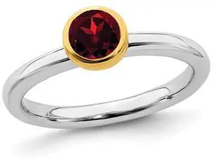 3/5 Carat (ctw) Solitaire Garnet Ring in Sterling Silver with Yellow Accent