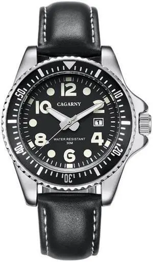 CAGARNY 6863 Fashion Waterproof Quartz Movement Wrist Watch with Leather Band (Black)