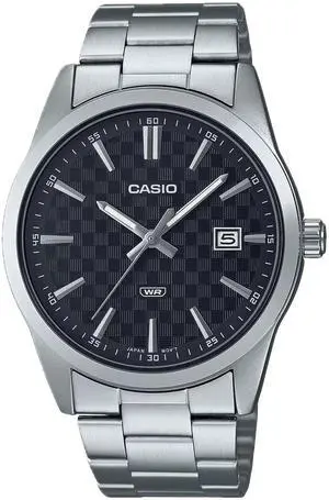Casio Mens Black Check-Pattern Dial Stainless Steel Bracelet Watch - MTP-VD03D-1AUDF