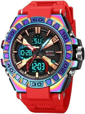 STRYVE S8026 Sports Colorful Night Light Electronic Waterproof Watch Multifunctional Student Watch (Colorful Red)