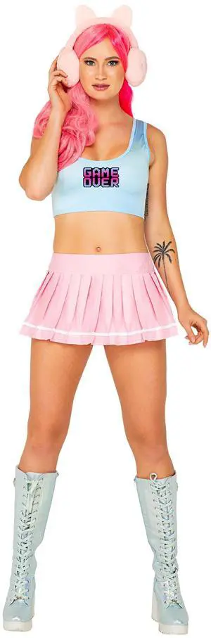 Roma Costume 3pc Video Game Doll, Pink/Blue, M