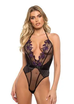 Roma Costume Play Bunny Kiss Teddy, Black/Nude, M