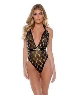 Roma Costume Play Foiled Bunny Teddy, Black/Gold, 1X