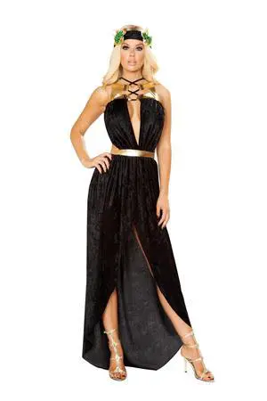 Roma Costume 2pc Greek Goddess, Black/Gold, S/M