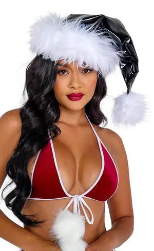 Roma Costume Vinyl & Faux Fur Santa Hat, Black/White, One Size
