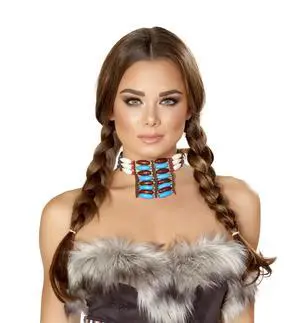 Roma Costume Indian Necklace with Stones, Brown/White/Turquoise, One Size