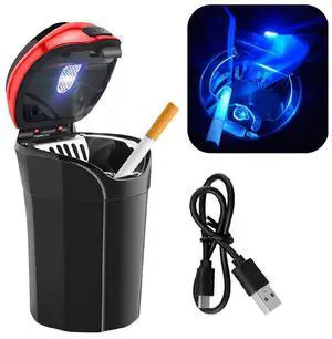 Car Ashtray with Lid, Rechargeable Stainless Auto Ashtray with LED Light Indicator, Portable Smell-Proof Ashtray Cup with Lid & Detachable Cigarette Lighter, Car Accessories (Red)
