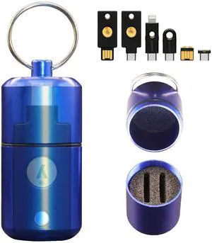 Enhanced Sponge Shock Absorption Protector Case, Fully Compatible with Yubikey 5/5FIPS/Key/Bio Series, Waterproof and Shockproof Cryptocurrency Wallet Security Case (1, Blue, Two Groove)