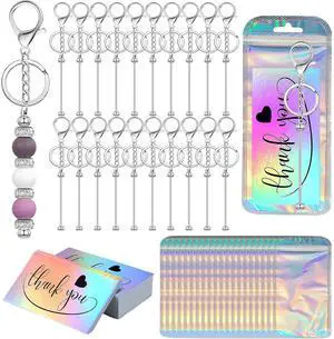 60 Pcs Beadable Keychain Bars Bulk Blank Creative Cute Keychains Bar for Beads Purse Keychains for Women Man