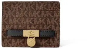 Michael Kors Hamilton Small Compact Wallet, Gold-Tone Hardware/MK Signature Coated Twill/Brown/Black