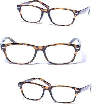 "The Intellect" 3 Pair of Unisex Reading Glasses - Spring Hinges +3.00 Tortoise