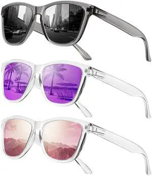 Polarized Sunglasses for Women Men Trendy Classic Retro Designer Style Fashion UV400 Protection 3 PACK Black Brown Gradient Pink Mirrored