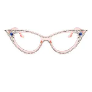 ICARA Sparkling Crystal Retro Cat Eye Frame Bling Rhinestone Reading Glasses for Women Blue Light Blocking Computer Eyeglass (Pink, 2, multiplier_x)