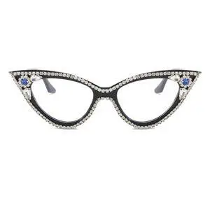 ICARA Sparkling Crystal Retro Cat Eye Frame Bling Rhinestone Reading Glasses for Women Blue Light Blocking Computer Eyeglass (Black, 1.75, multiplier_x)