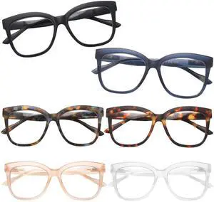 fadbon 6 Pack Fashion Reading Glasses for Women - Blue Light Blocking Square Readers Anti Eyestrain Eyeglasses Spring Hinge(6 Pack Mix,2.00,x)