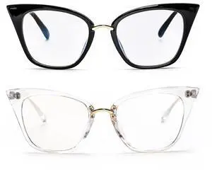 ZUVGEES 2 Pack Womens Cute Oversized Cat Eye Blue Light Blocking Reading Glasses Computer Readers(Black+Transparent,2.50)