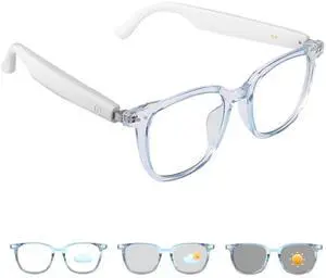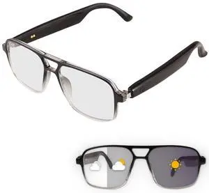 Smart Glasses, Photochromic Anti Blue Light Bluetooth Sunglasses, UV400 Protection, Open-Ear Audio, Hands-Free Calls, Voice Assistant, Wireless Eyewear for Men Women