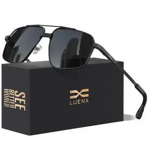 Mens Women Polarized Sunglasses Aviator, Square Polygon Lens Driving UV400 Protection Retro 60mm,Black Lens Black Frame