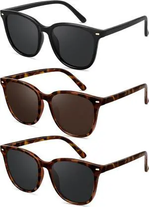 2 Packs Sunglasses for Women Polarized UV400 Protection Lens Big Frame Fashion Glasses Trendy Stylish Shade