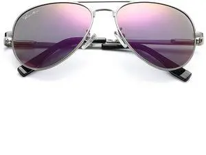 Polarized Aviator Sunglasses for Men and Women 100% UV Protection, 58mm (Silver Frame/Purple Mirrored Lens)
