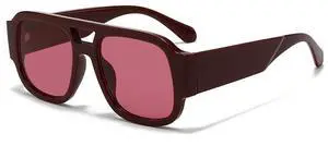 Double Bridge Rectangle Sunglasses Retro Classic Square Eyewear UV400 Protection Driving for Women Men (Red)
