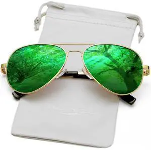 Classic Aviator Polarized Sunglasses for Men Women Spring Hinge Metal Frame UV400 Protection (Gold/Green Mirror)