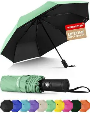 Compact Travel Umbrella, 44" Canopy, Automatic Open/Close Windproof Umbrella, 210T Pongee, 8-Rib Fiberglass, Travel Size Mini, Portable Rain/Sun Umbrellas UPF 50+ with Cover