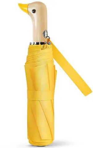 Yellow Duck Auto Umbrella - Cute Compact Travel Collapsible Windproof Portable Umbrellas for Rain with Duck Wooden Head Handle Adult