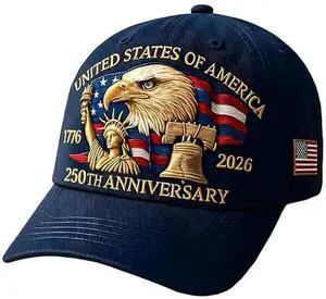 250 Anniversary USA Hat for Man Adjustable United States Patriotic Baseball Cap 250th Anniversary Hat 1776-2026 Year Embroidered Patriot Caps Accessories for Holiday Dad Gift Cow