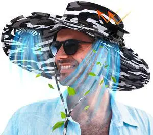 Men Sun Hat with 2 Solar Fan Fishing Wide Brim Sun Hat for Beach Outdoor Summer Camping, USB & Solar Powered(Black and White,Camouflage)