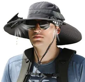 Hat with Fan,Solar Fan Hat,Wide Brim Sun Hat with 2 Detachable, for Outdoor Fishing,Hiking Gardening(Dark Grey)