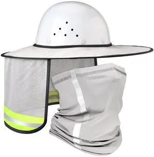 2 Pcs Sun Hard Hat Neck Protection High Visibility Full Brim Mesh Sun Protection and Neck Gaiter Bandana Face Scarf for Construction Helmet Hard Hat Accessories, Reflective(Dusty Grey)