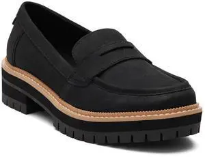 TOMS Women's Cara Comfortable Leather Flat Loafer, Black, Size 8