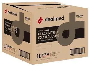 DEALMED 787352 Disposable Gloves, Nitrile, Powder-Free, M, 1000 PK, Black