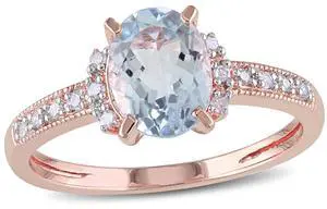 1.00 Carat (ctw) Clear Aquamarine Ring with Diamonds in Rose Plated Sterling Silver