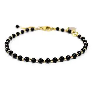 3mm Black Onyx Natural Gemstone Beaded Bracelet for Women, Dainty Tiny Charm Jewelry, Adjustable 7.1-8.6", Ideal Birthday Holiday Gift
